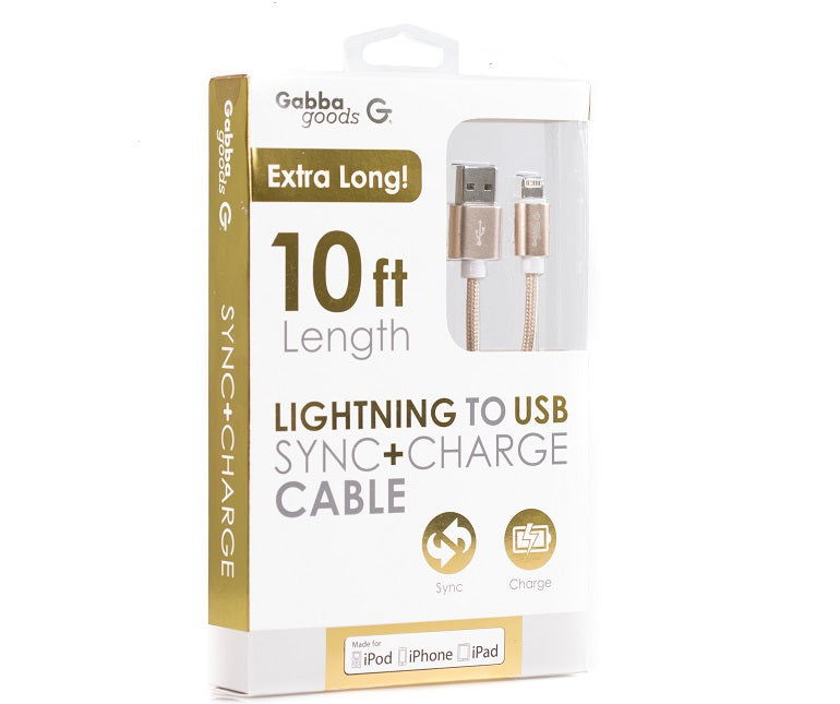 GabbaGoods MFI certified Metallix 10-Ft Sync and Charge Lightning Cables